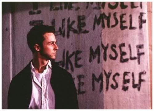 Tyler: Fuck damnation. Fuck redemption. We are God's unwanted children, with no special place and no special attention, and so be it. [...]You can go to the sink and run water over your hand. Look at me! Or you can use vinegar to neutralize the burn, but first you have to give up. First, you have to know that someday, you are going to die. Until you know that, you will be useless.